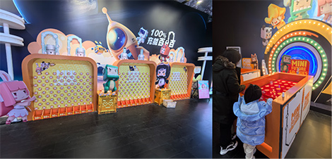 從“投壺挑戰”到“落球得分”,簡單的互動形式得到了游戲任務的包裝趣味感與“使命感”十足,更重要的一點是作為親子互動游戲,簡單快捷的形式不影響陪同家長的互動積極性,在確保親子體驗熱情高漲的同時還避免了多組玩家滯留的現象發生,實現了觀展體驗感與流暢度的“雙優”。