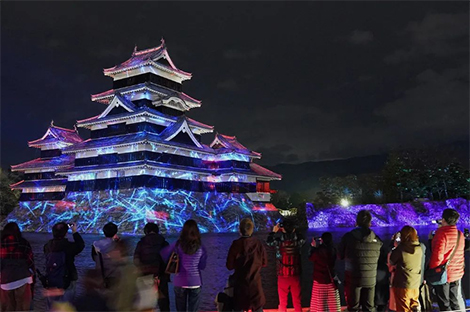 此次,愛普生與日本長野合作伙伴合作,使用十臺愛普生 3LCD 激光工程投影機首次對松本城進行實物投影,力求展現其時代風采,煥發傳統文化的嶄新魅力,投影效果驚艷,使其大放異彩。