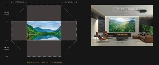 CH-QB1000B具有超大范圍鏡頭位移功能,在調(diào)校中不會(huì)損失畫(huà)質(zhì)。其獲得專利*6的機(jī)身正面通風(fēng)設(shè)計(jì)使用戶可以輕松調(diào)整投影角度和畫(huà)面大小,隨時(shí)沉浸于影院級(jí)的視聽(tīng)享受之中。