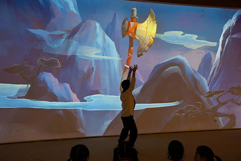 杭州天地實驗小學使用愛普生激光工程投影機搭配8X8.3米大屏幕,為學生們打造了光影戲劇課《寶蓮燈》。在光影課堂中,學生不再是簡單的參與者,而是化身成為劇情的創造者,師生共同入戲,動作協同光影切換,讓學生身臨其境地體驗沉香不畏艱難險阻,勇往直前劈山救母的故事。