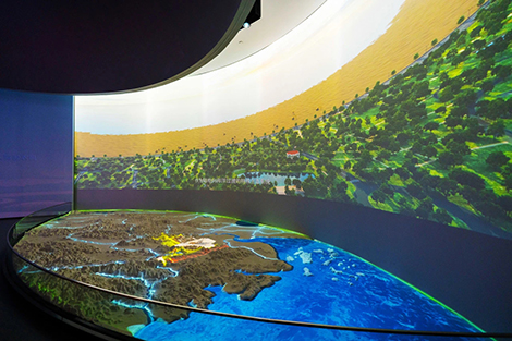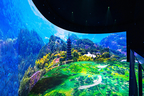 園區總建筑面積達17萬平方米,展示中心由“一樓中國方案、永康實力”“二樓林草華章”三大部分組成,通過30000流明*1*2CB-L30000U和7000流明*1*2 CB-L735U 組合應用,為參觀者打造震撼的沉浸式視覺體驗。