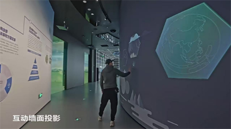 當參觀者將手置于7大場景主題對應的投影的手掌標識上,即刻可觸發對應生態主題的精彩動畫。