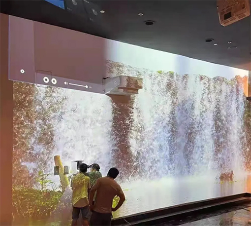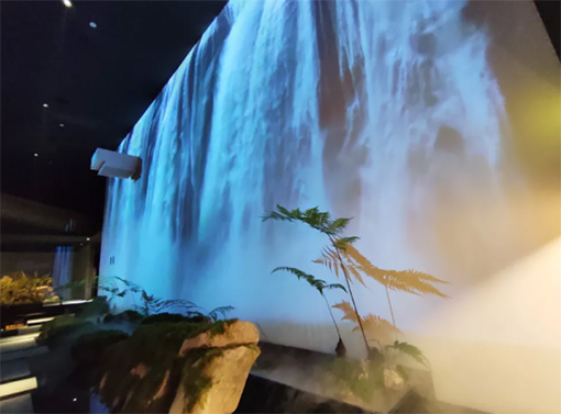 科技賦能智慧生活,麥克賽爾投影機憑借優質的產品性能和創新技術打造一個又一個讓人嘆為觀止的創新應用案例。不僅給顧客及參觀者帶來無與倫比的直觀感受,更能夠令人感受到自然之美、感悟人與自然的和諧共生之意境。巨型瀑布傾瀉而下,磅礴壯觀、潑灑飛流,令顧客及參觀者贊嘆不已。得以呈現如此壯觀的景象,離不開麥克賽爾短焦激光工程投影機MMP-K5010U的精彩演繹。