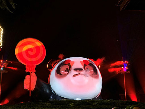 大熊貓雕塑投影秀 瓊海夜晚的一道風景線