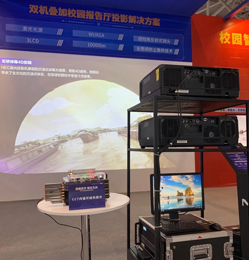 NEC年度新品CS5500HL騎士系列打造的雙機融合校園大數據解決方案在展會上“賺足眼球”,贏得了“硬核方案”的好評。騎士系列的橫空出世填補了教育投影機在5000流明段激光短焦的市場空白,滿足了教育客戶對高流明產品的需求。今年,針對騎士產品我們在全國舉辦了6場巡展,受到了客戶的高度評價。CS5500HL亮度超群,兩臺產品融合輕松投射超大尺寸畫面,畫質表現十分驚艷,即使在白天環境光強烈的狀況下,也能清楚地觀察每一處監控細節,實現監控數據實時顯示;同時,騎士系列30000小時超長使用壽命、IP6X最高防塵等級、無過濾網設計等強大優勢也免去了用戶頻繁維護、更換機器的后顧之憂,是校園大數據解決方案的一次全新探索。
