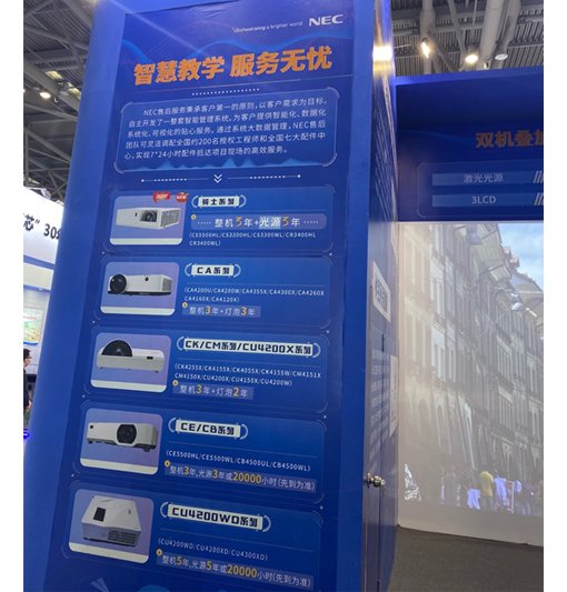響用戶所想,應用戶所需。NEC一直將產品創新與完善服務放在同等重要的位置,秉持客戶第一的售后服務原則。通過自主開發的智能管理系統、遍及全國的專業工程師和七大配件中心,NEC可即時響應客戶需求,提供專業化、系統化的售后服務;不僅如此,NEC更是在行業內率先推出“3+3”的質保服務政策,廣泛應用于新品騎士系列、CA系列等多款投影產品,全面升級教育產品線的服務體系,加強客戶使用保障。