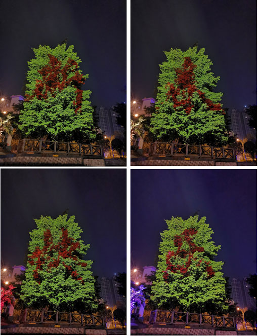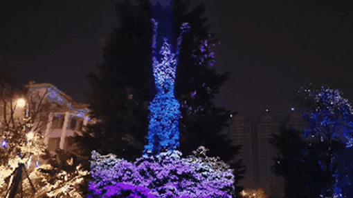 蔥郁的樹枝與雙色激光投影技術一起打造出立體感十足的奇特光影秀。縱橫光柱沿著樹干延伸,五彩繽紛的花朵蔓延盛開,如繁星在天,落英在水,風過處枝丫輕輕晃動,光影閃爍。值得注意的是,采用了雙色激光光源技術的英雄PX2000UL+