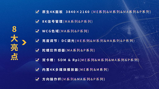 當下,對顯示終端的要求從原來單一化向多元化、智能化轉變,與其他設備的擴展協作等變為核心需求。NEC全新的4K平臺ME、M、MA及P