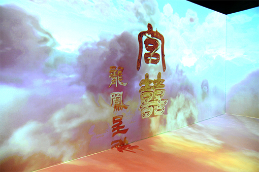 在游客驚艷于對國寶的全方位展示時,展項前通過軌道鏡投影的方式呈現的五彩霞鳳悄然于上方飛過,更在人心中留下深刻印象。