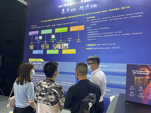 光源翻新是NEC針對激光光源推出的一項超高性價比的翻新服務,以新光源1/3的價格進行光源置換,實現亮度升級。展會現場,NEC工作人員為客戶詳細介紹了光源翻新的服務流程和效果反饋。購買光源翻新服務,還可獲贈光影行動。光源翻新后,提供兩年的光源亮度保70%的質保和光源故障售后服務。