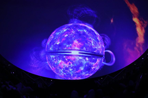 中國(guó)科技館的“球幕影院”極具特色,球幕直徑30米,可容納400余名觀眾。在超過(guò)1000平方米的畫面上,通過(guò)NEC的10臺(tái)4萬(wàn)流明高端投影機(jī),實(shí)現(xiàn)了高達(dá)8K分辨率的球幕顯示效果,是目前世界最大的真8K球幕影院。孩子們?cè)谶@里仿佛置身于浩瀚星空宇宙中,與“科學(xué)”相伴,一同探索天文、天體的奧秘。