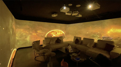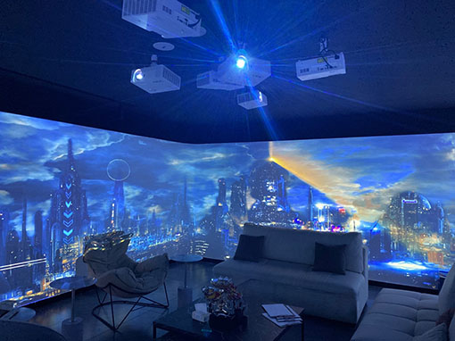 HD、0.5投射比)通過融合投影打造的超大畫面沉浸式CAVE空間,更受玩家追捧。談及這個(gè)房間,3A