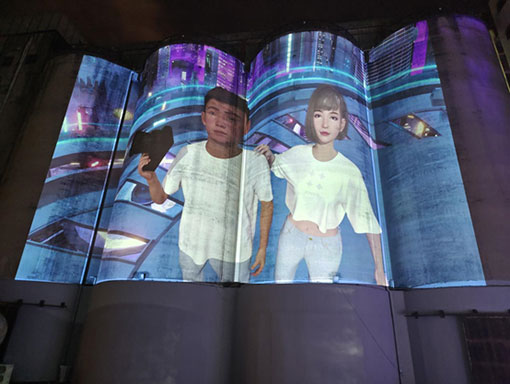 依托2萬流明超高亮度和震撼的色彩表現力,4臺NEC英雄系列雙色激光投影PX2000UL+,在每個直徑為12米、整體高度達32米的4個筒倉上投射出畫面高度為23米、整個投影面積超過1500平方米的巨幅影像,令筒倉的巨型工業水泥墻化身數字空間的現實載體,為觀眾呈現了一場虛擬偶像、數字TWINLAND等炫酷的元宇宙數字體驗。大筒倉也得以在精彩紛呈的光影變化中抖落歷史的塵埃,以更具科技感、時尚感、潮流感和未來感的姿態,呈現在深圳市民的眼前,成為深圳一張驚艷世人的光影名片。