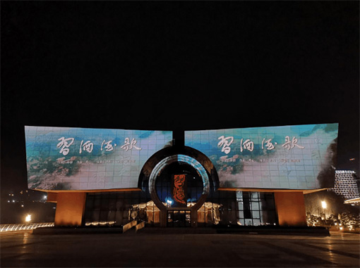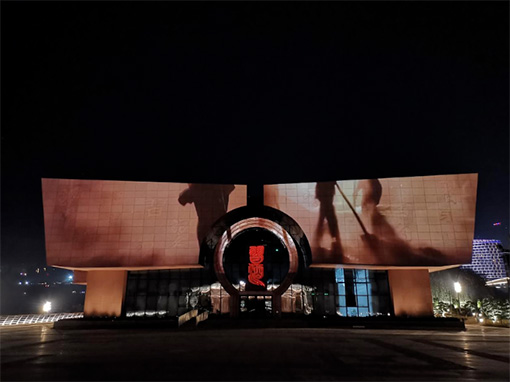 習(xí)酒文化城是習(xí)酒品牌文化戰(zhàn)略發(fā)展的標(biāo)志性工程,肩負(fù)著深入推進(jìn)企業(yè)文化建設(shè)和發(fā)展,強(qiáng)化企業(yè)文化優(yōu)勢,賦能品牌發(fā)展的重要使命。文化城的建造過程歷經(jīng)700余個(gè)日夜,整體建筑采用船舶造型,象征著品牌的揚(yáng)帆起航。在建筑的正面墻體即船艙的入口處,采用4臺NEC英雄系列雙色激光投影PX2000UL+,通過3+1的方式進(jìn)行異形融合,將正面墻體變成一塊栩栩如生的大屏,生動再現(xiàn)了習(xí)酒集團(tuán)的文化、歷史和美好未來。