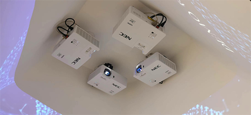 都說病理學是現代醫學臨床診斷的“金標準”,有著舉足輕重的地位。那病理學到底是什么?讓我們走入科技館探尋答案。步入展館,2臺NEC騎士系列激光投影機CS5500HL隱藏安裝在同心圓中,光路透過屋頂與地面相交,仿若形成獨立時空,對話病理學的前世、今生和未來。醫學科研看重的是準確無誤呈現,數據差之分毫,結果謬以千里。對投影機來說也是一樣,精準還原才能準確表達。CS5500HL具有5000流明的高亮度,加之1920*1080全高清分辨率,圖像刻畫精確,細節層次豐富。同時,擁有高色域認證且支持六軸色彩校正技術,保證了色彩的精準還原及色彩輸出的一致性,讓畫面呈現更加艷麗。