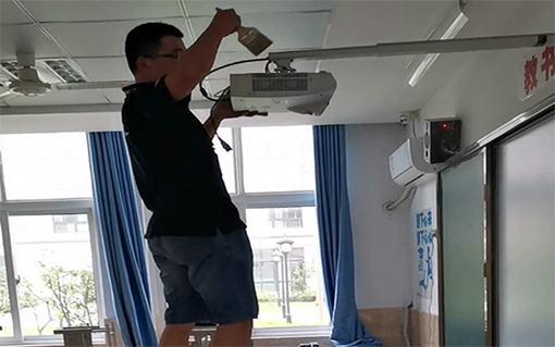 NEC投影機(jī)工作人員為客戶提供除塵服務(wù)