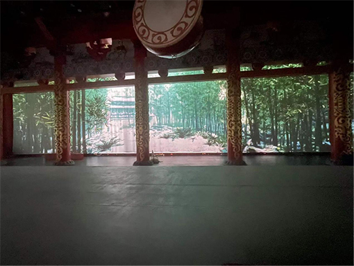 多臺NEC英雄系列雙色激光投影機被分別應用于茶市小鎮主廣場中的天幕、地幕和中央大鼓,2萬流明超高亮度、WUXGA高分辨率打造出立體式的交匯光影,用極具視覺震撼力的影像吸引游客視線,通過“行進+沉浸”的演出方式,讓游客得以感受一場在天地間的風韻盛唐往事,一幅千年的浮梁恢宏畫卷。十余臺NEC極光系列激光投影機則應用于室內,打造全沉浸式演藝空間,讓觀眾沉浸在浮梁茶的故事中。