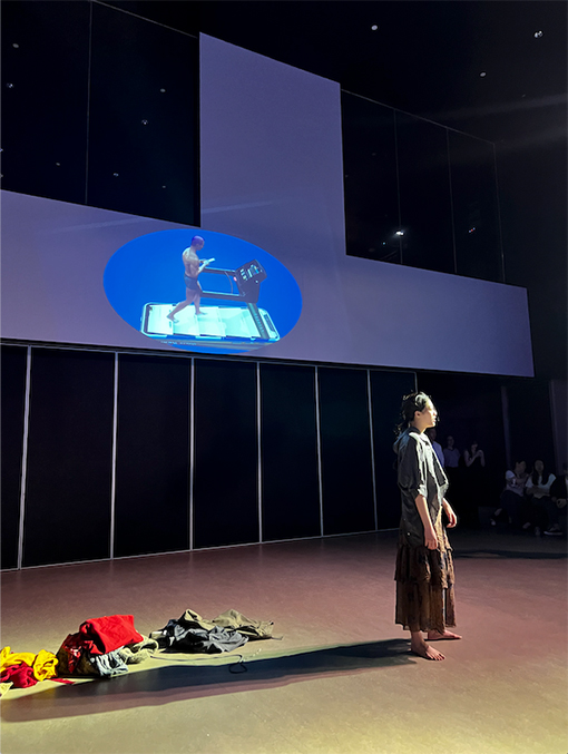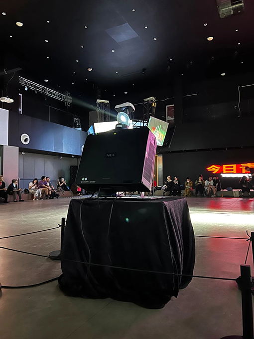Daily》作品,藝術家將顯示屏作為跑步機的“履帶”,播放著人們在網絡上虛擬身份不停輪換的狀態。透過投影機與小小軌道鏡的聯動,墻上的影像隨之移動,這一靜態轉為動態的展示變化通過更靈活的方式承托了藝術家的創作靈感,使藝術作品擁有更廣闊的舞臺。