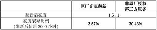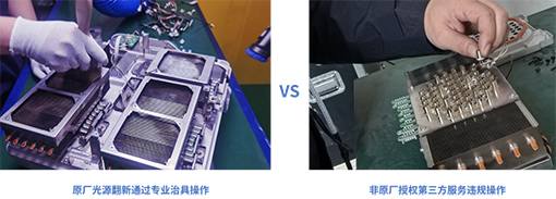 操作規(guī)范:原廠(chǎng)光源翻新流程規(guī)范嚴(yán)格,通過(guò)專(zhuān)業(yè)治具操作;非原廠(chǎng)授權(quán)第三方服務(wù)違規(guī)操作頻繁,無(wú)法保障質(zhì)量。