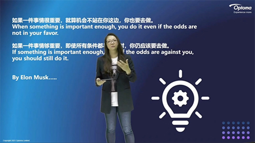 “9D多圖層系統”是奧圖碼針對教育領域的解決方案。從理念上,多層的“3D”架構讓傳統的線上教學脫離“2D”的束縛,背景、教師、課件標志物三方面的“3D”化在學生的眼中形成一個整體,無論是從知識理解的清晰度還是教學趣味性來講,其而所創造出的實際教學效果相較傳統線上教學顯然是十分卓越的。而下降到底層的產品,這一切將通過電腦、手機、投影機或是VR/AR/MR的方式呈現。