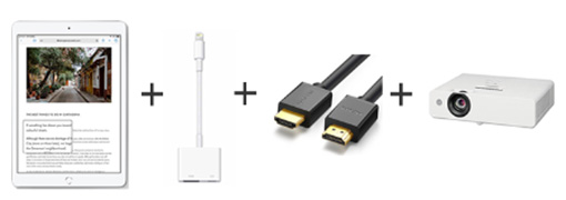 3、iPad+轉(zhuǎn)換接頭+HDMI線+松下投影機(jī)