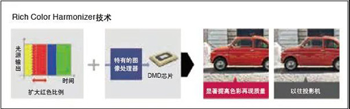 Harmonizer技術(shù)提高色彩還原性,實(shí)現(xiàn)高亮度且色彩鮮明的圖像,結(jié)合平滑像素驅(qū)動(dòng)技術(shù)的單軸像素移動(dòng),可呈現(xiàn)超過(guò)面板分辨率的高清晰圖像。