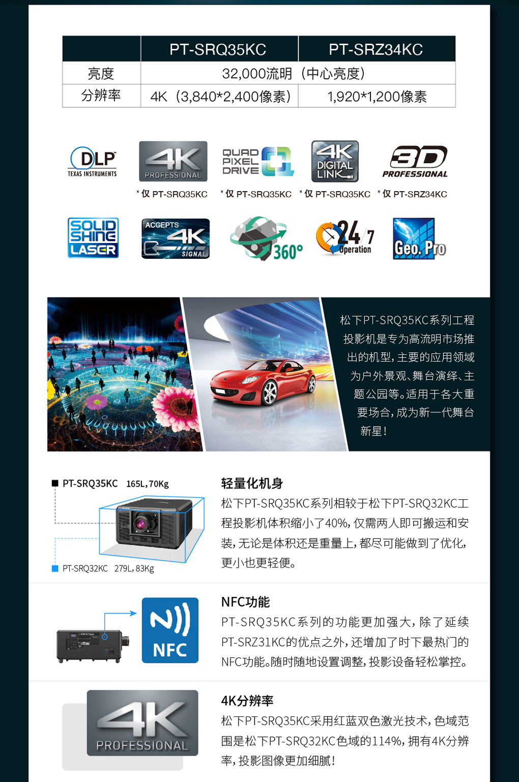 以技術引領行業,以產品滿足市場。PSCCN 旗下主要產品有投影機、液晶顯示器、廣播電視設備、辦公通訊設備、筆記本電腦、安防監控系統、音響等,公司在持續對產品進行技術革新的同時,還應市場需求不斷從海外引進性能更加先進的產品。高品質的產品力,再加上高效率的現場力,PSCCN 活躍在媒體娛樂行業,廣播電視行業,公共行業,教育行業,制造行業等領域,在向行業客戶不斷輸出整體解決方案的同時,也促進了其經營的持續創新與進步。如欲了解更多信息,請訪問集團網站:http://www.panasonic.com/global,中國區官方網站:http://panasonic.cn,官方微博網址:http://e.weibo.com/aboutpanasonic,官方微信:Panasonic松下中國