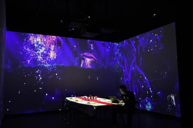 系統介紹:項目使用1臺松下PT-SRQ35KC激光光源工程投影對寬6.4米,高4米墻面投射。該機擁有32,000流明的高亮度和20,000:1的對比度,4倍像素驅動模式下即享4K分辨率,單臺即可清晰細膩的呈現出25.6平方米的巨幅畫面,同時實現1016Lux的屏前照度。由于展項內部空間有限,因此利用ET-D3LEU100C拐角鏡頭巧妙調整了投影機的方向,有效縮短了投距以及投影機和正門的距離,靈活解決了“小空間、大畫面”的投射難題。 |