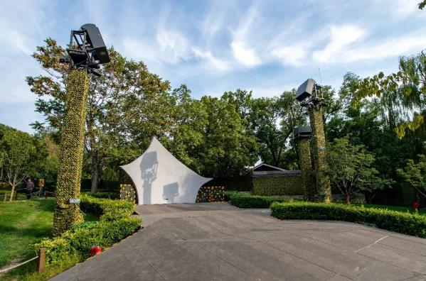 作為疫情后北京首個城市公園戶外光影藝術沉浸式體驗活動,“萬物共生”結合國際前沿的科技手段,將光影與自然、虛擬與現實相結合,園區內利用大量的燈光影像設備,構建出一個神奇的景觀世界,打造出獨一無二的夜游體驗。
