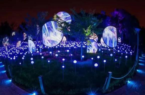 首屆北京國際光影藝術季占地18000平米,以“萬物共生”為主題,在北京玉淵潭公園“櫻落花谷”利用燈光藝術上演夢幻國度。