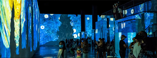 Immersive額外使用53臺投影機設計了第二種無需下車的“得來速”式觀展方式。與傳統的步入式體驗展一起對公眾開放。兩種形式的展覽都讓參觀者置身于梵高經典的藝術作品中。首展門票迅速售罄,網上也熱議不斷。而來自團隊的反饋表示,自藝術展開展以來,松下投影機所需的維護和保養成本都非常低。