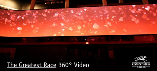 肯塔基賽馬博物館是肯塔基州路易斯維爾市的重要旅游景點,館內展示著一切有關肯塔基賽馬的展品。肯塔基賽馬被譽為“體育賽事中最激動人心的兩分鐘”,賽馬博物館則將這令人心跳的兩分鐘搬進了博物館的大廳,一遍遍地重現比賽畫面。博物館大廳呈橢圓形,如同賽馬場的跑道形狀,64米長、3米高的360度屏幕環繞整個大廳。大屏幕主要用于播放名為“最偉大的賽事”的視頻。這部視頻早在1985年開始就一直在大屏幕上播放著,最早是以96張幻燈片的形式播放。從最初的多張幻燈片到現在的無縫超高清視頻,和博物館一直合作的兩家媒體設計團隊居功至偉,它們分別是Donna