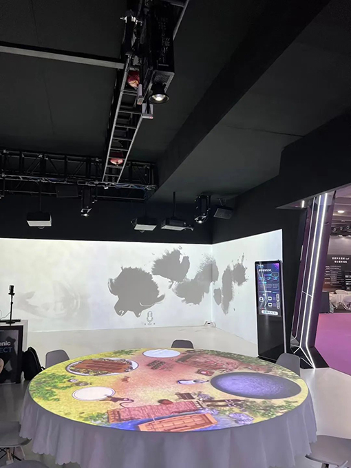 一臺(tái)PT-FRQ100C搭配雷達(dá)技術(shù),帶給觀眾從未有過(guò)的“就餐”新體驗(yàn)。餐桌之上,人與物的所有動(dòng)作都能被雷達(dá)捕捉,揮動(dòng)雙手或移動(dòng)餐具,就會(huì)有光效回應(yīng)——花朵環(huán)繞生息觸摸成蕾、星芒依觀眾的心意綻放、動(dòng)物互相追逐幻化成光跡。