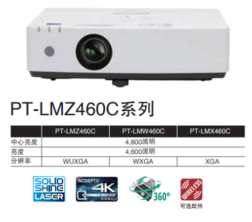 松下PT-LMZ460C便攜式激光長(zhǎng)焦投影機(jī)輕巧緊湊,性能卓越輕松滿足用戶日常工作中的使用需求。 |