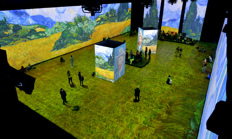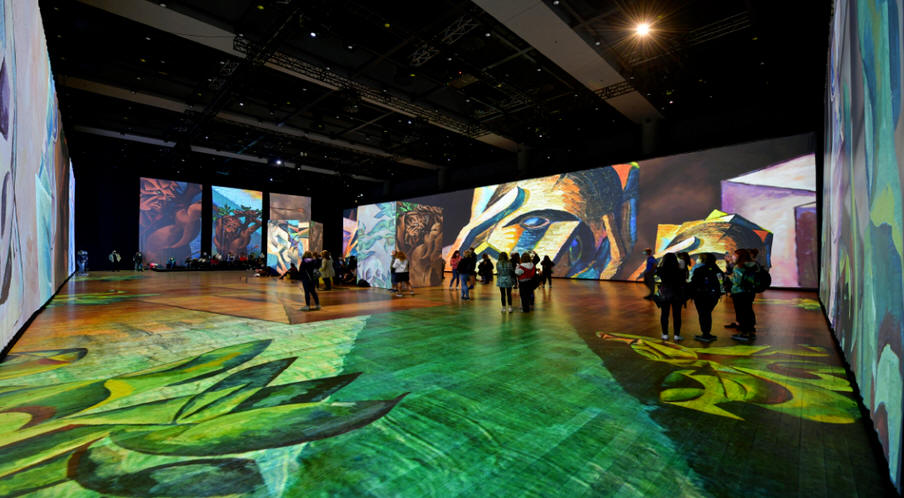 本次多媒體藝術展為捷克帶來了一個全新的理念,讓人們以不同的角度去欣賞藝術。它的特殊之處不僅在于藝術呈現(xiàn)的方式,即畫作并不是實體展示,而是以巨幅的投影形式呈現(xiàn),還在于這些畫作所覆蓋的大面積空間。這些杰作被投影到展廳四面的高墻上、場地中間的兩根立柱以及地面上。3D環(huán)繞的美妙音樂結(jié)合投影影像,讓游客們置身其間,沉浸體驗。