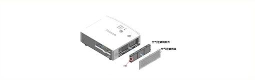 清洗空氣過濾網(wǎng)組件并使其完全晾干后,再重新裝入投影機(jī)。