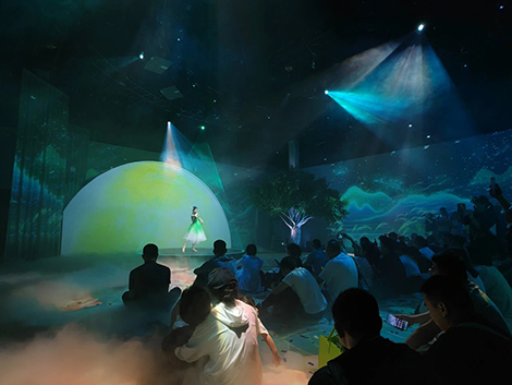 《四時雅光》場景中,共使用8臺松下PT-SMZ21KCL液晶工程投影機,負責四周墻面、舞臺背景的月亮造景和紗幕的投影。松下系統工程投影機出色的色彩還原是表現數字內容的關鍵,優秀的融合性能與多臺投影機同步功能也在打造大畫面沉浸式無縫影像時有著重要作用。另外,松下系統工程投影機還支持多種命令協議,在舞臺演出等場景編排中,可與其它舞臺燈光設備等進行聯動控制。 |