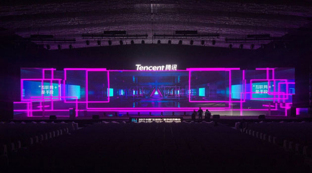 會議應用12臺PT-SRZ31KC激光工程投影機打造36*6.3米凹凸不平的巨型屏幕,使用投影融合技術,使大屏幕呈現變幻莫測的絢麗造型... |