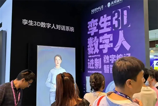 SF500展示的3D孿生數字人對話系統(tǒng),無疑是本次展會的一大亮點。將最尖端的3D渲染技術和人工智能算法,通過激光科技呈現于墻面,并實現觀眾與數字人的實時互動對話。這一方案不僅展示了視美樂在人工智能領域的超前布局,也為未來的人機交互呈現方式提供了新的可能。