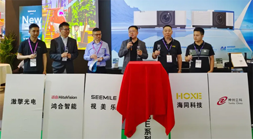 視美樂此次盛情邀請投影之窗總經理唐海龍先生擔任儀式的主持嘉賓,并與鴻合智能副總周峰華、神州云科總監(jiān)王寧、廈門海同總經理肖良開等行業(yè)伙伴一同成立了“HEP投影產業(yè)聯(lián)盟”,這一聯(lián)盟的成立,不僅將推動HEP封裝芯片與整機的應用推廣,更將為整個行業(yè)的技術創(chuàng)新和產業(yè)發(fā)展注入新的活力。作為Ti德州儀器在華推廣HEP封裝的先鋒部隊,該聯(lián)盟將匯聚各方力量,共同推動行業(yè)的創(chuàng)新與發(fā)展。與此同時,大家共同為HEP800智能靚色E系列新機揭幕。