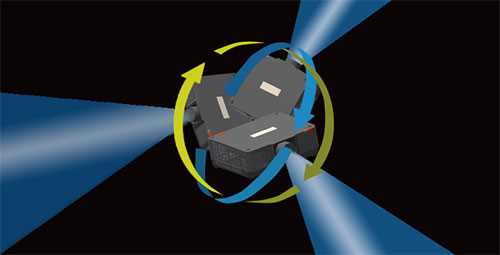 由于激光光源的采用,XG-EG100A能夠提供靈活的安裝選擇,支持360°全方位投影,可以配合環境需求進行傾斜角度設計,任意方向投影,不再受限于傳統投影嚴苛的放置規定,給工程應用帶來了更大便利性。在360°投影時,應考慮安規要求,配合防護罩使用。