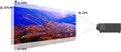 XG-EG100A新品工程投影機具有鏡頭移動功能,可以通過菜單將畫面無損平移,為實現拼接和融合功能提供便利,用戶可以輕松地調整投影圖像的位置。垂直方向最大調節范圍為50%(向上),10%(向下),水平方向最大調節范圍為±20%。