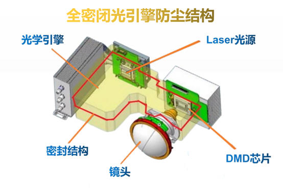 無論在會議室、教室或展示空間,粉塵都是影響投影機壽命和效果的主要原因。夏普“伯爵”系列從根本上杜絕了粉塵困擾。其采用了全密閉光學引擎防塵結構,讓激光光源、DMD芯片、鏡頭等核心元器件都處于完全密封的結構中,粉塵完全不會進入其中干擾元器件。不僅可以確保元器件不會因粉塵而故障,還能讓亮度衰減與性能下降更緩慢。
