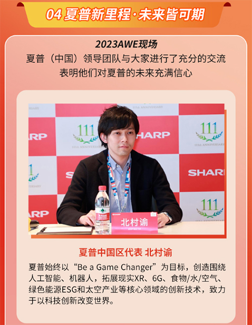 111周年之際,夏普還將于11月11日舉辦“夏普科技日”活動,進一步闡述未來的技術戰略,并展示自主研發的最新產品和解決方案。如今,AWE2023夏普全品類尖端產品的亮相,必將為“夏普科技日”活動提供一次預演的絕佳舞臺。
