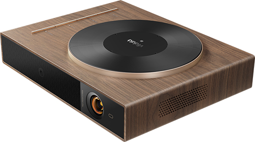 與C1系列的立方體造型不同,高顏、高亮的輕薄LED投影Vidda悅己M1采用了全新的設計語言——整體造型極為纖薄,不到一張A4紙的大小,就像一本大書。可以輕松放進普通的背包中,方便隨時隨地投出高清大屏。此外,悅己M1的頂部有一塊醒目的黑色圓形設計,很容易就讓人聯想到黑膠唱片。這造型,關機的時候還以為是一臺復古的木制唱機呢。電影+音樂,不就是當代年輕人工作生活中舒壓的法寶么?要說懂年輕人果然還是得Vidda!