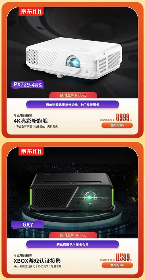 [投影之窗消息] 買投影上京東,11.11優(yōu)派店鋪四重好禮等你來:1.現(xiàn)貨不用等(至高直降3400元);2.下單好禮(部分機型送電視盒子);3.曬單贈好禮(視頻半年卡、年卡等);4.價保11.11(精品好物提前購)。