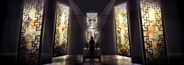 影像的最后,江河山巒漸漸隱去,星空流轉(zhuǎn)呈現(xiàn)而來,一組組頗具創(chuàng)意的國寶盒子依次顯現(xiàn),仿佛置身莊嚴(yán)的博物館現(xiàn)場,訴說每一段國寶背后的濃厚歷史。
