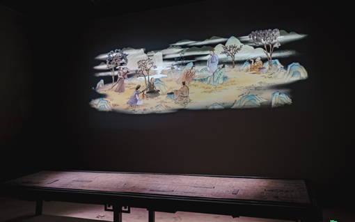 RU70983工程投影機(jī)所呈現(xiàn)的影像,與294塊古墓磚拼嵌而成的竹林七賢與榮啟期磚畫構(gòu)造而成。