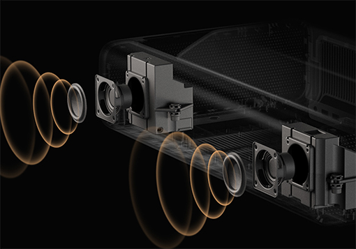 不僅畫質,極米MIRA在音質上更是全面碾壓百吋電視。極米與harman/kardon聯合為MIRA設計了2.1聲道音響,帶來令人驚艷的聽覺享受。前置的左右揚聲器,能正對觀眾席左右兩側發聲,有效形成聲音的方位感。絕無僅有的超大低音炮,讓低音下潛更飽滿、雄厚。更符合聲學規律的音響結構設計,提供遠超電視的3D環繞感。