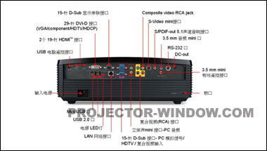 宏碁P7500投影機接口非常全面,輸入接口:Analog RGB/Component